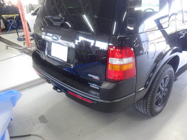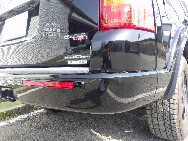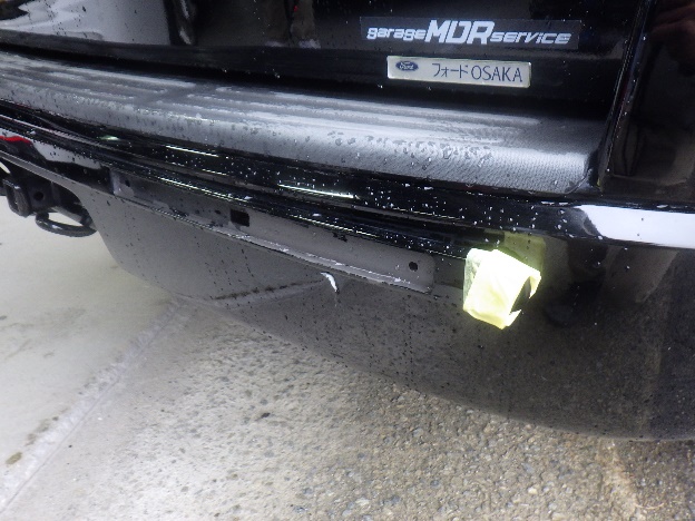 修理作業の後、修理を行ったモールをリヤバンパーへ取り付け、フィッティングの確認作業、