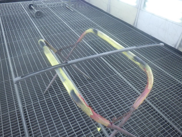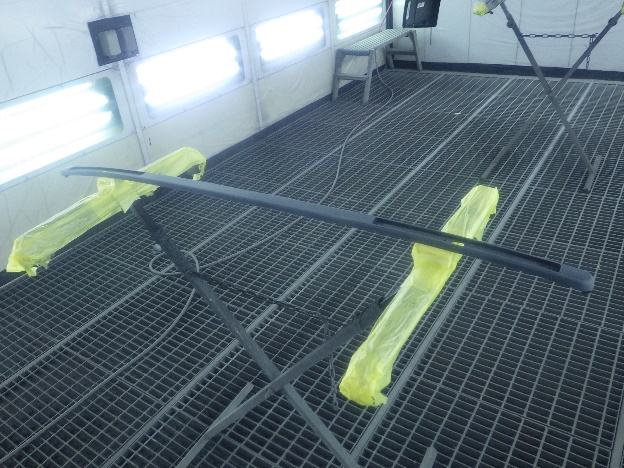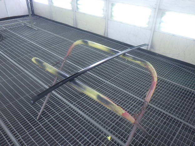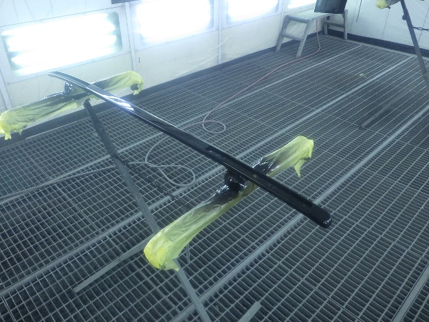 その後、ベースコート(黒)、トップコート(クリヤー)の順に、塗装作業を行いました。