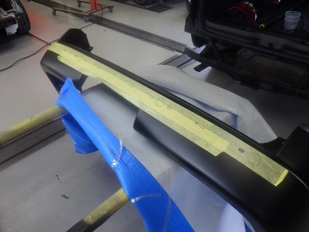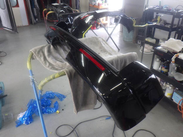 乾燥後、リヤバンパーに構成部品を取り付け、組み立て作業を行いました。