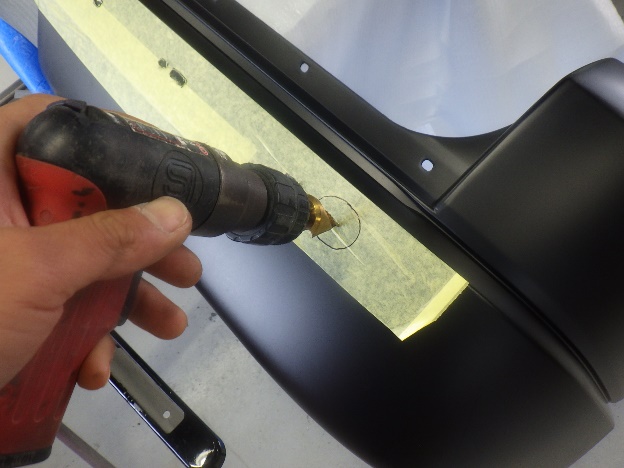 バンパーの穴開け作業の後、モールの修理作業を行いました。