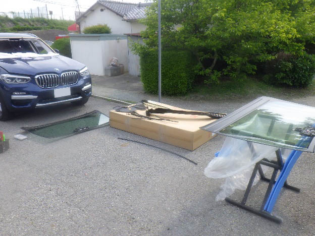 ガラスの外し作業、新品部品の組付け作業を行いました。