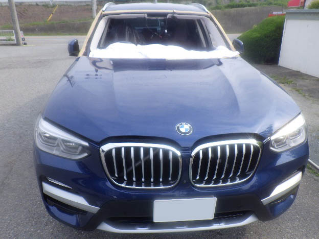 【板金塗装】兵庫県神戸市、K様、2019y、BMW、G01、X3、フロントガラス損傷へこみ修理レポートです!ありがとうございました。