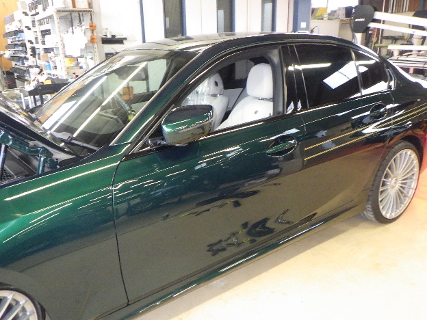 ベースコート(緑)、トップコート(クリヤー)の順に、塗装作業を行いました。