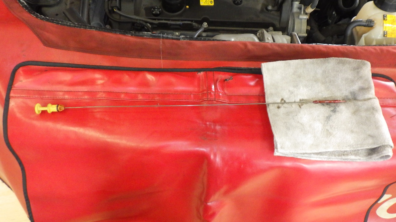 エンジンオイル交換後、レベルゲージにてオイル量を調整しております。