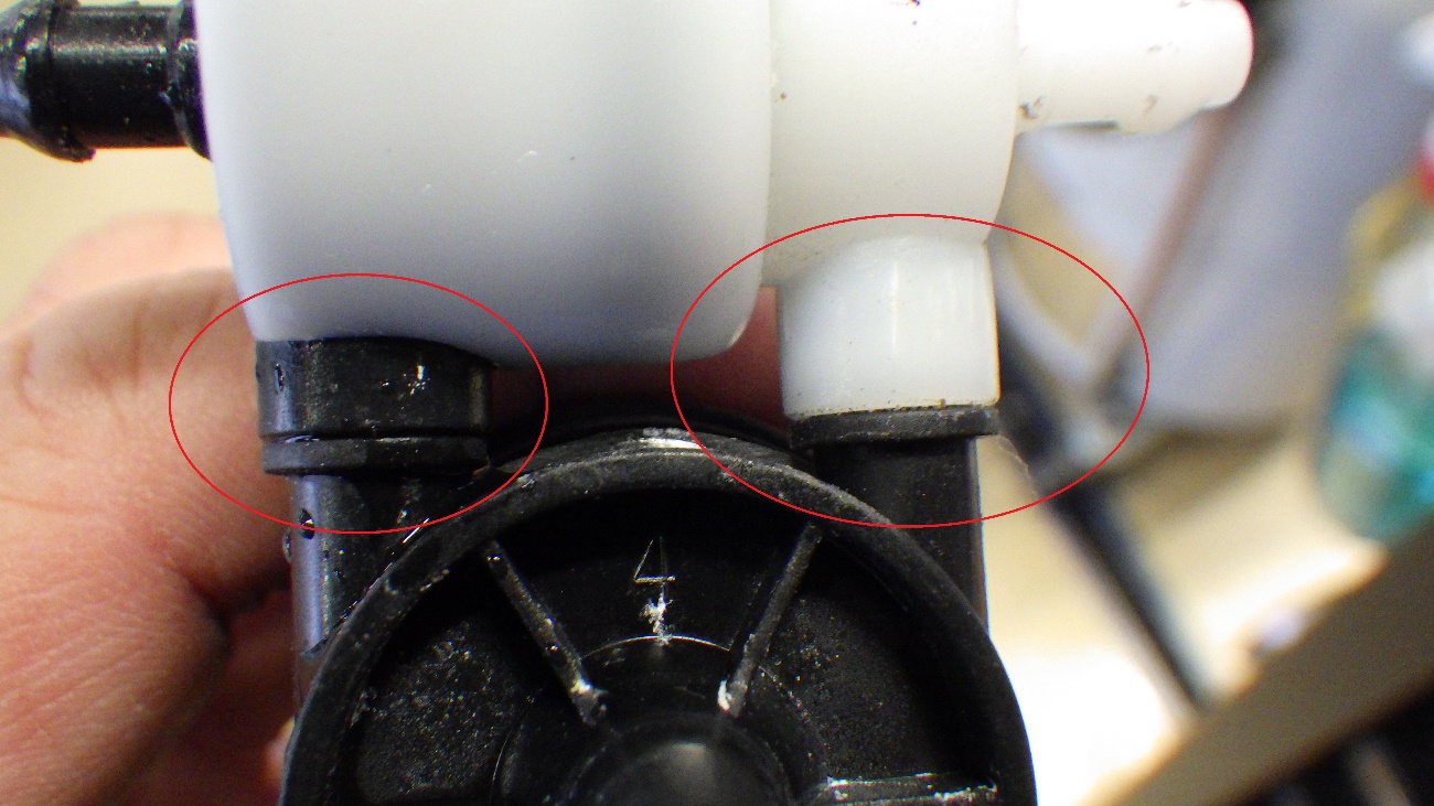 タイヤハウスを外して確認した結果、ウォッシャーポンプの吐出口(1WAYバルブ)
