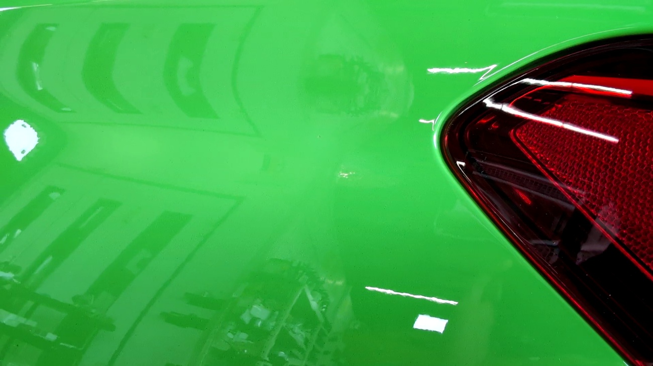 助手席側リアフェンダーのテールランプ付近に飛び石による傷がありました。