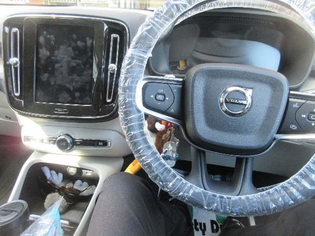 入庫確認作業の後、傷、汚れ防止の為、シートカバー、ハンドルカバー、