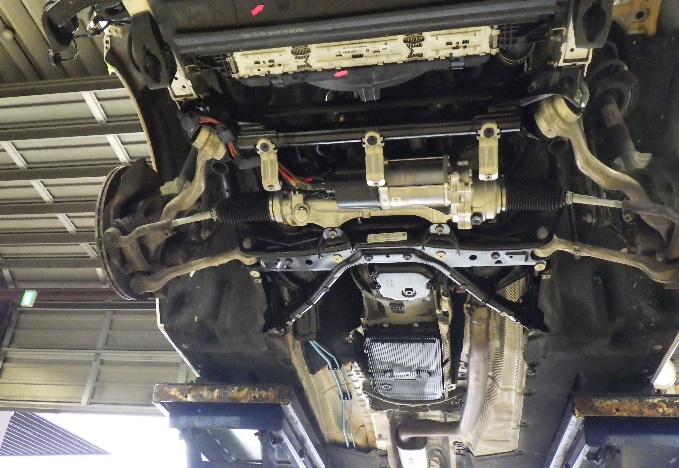 組み付け作業の後、タイヤの交換作業、4輪アライメント調整作業、