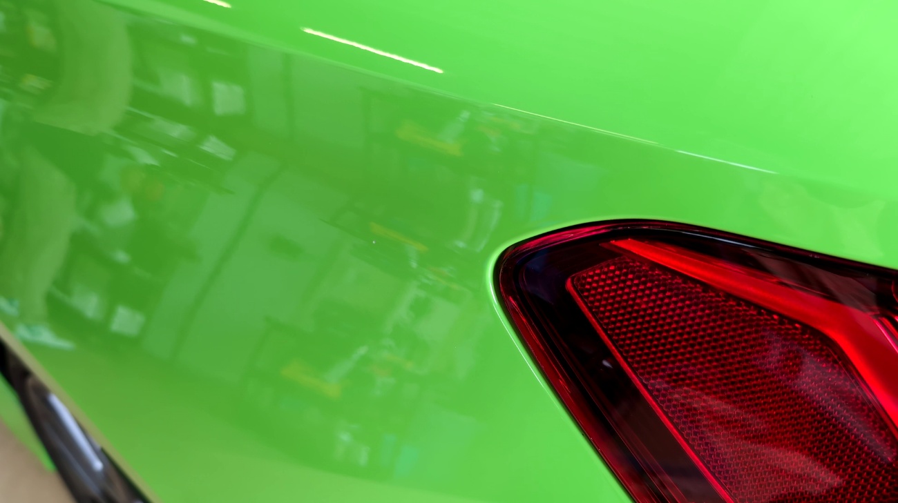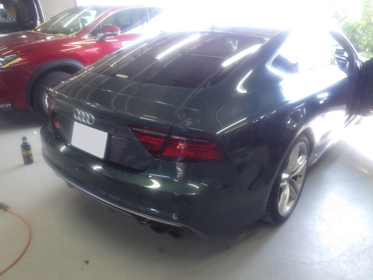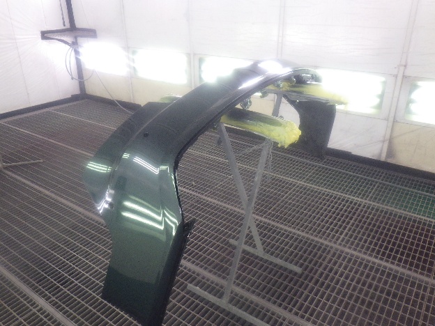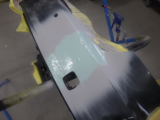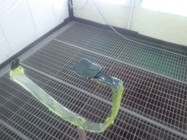 ベースコート(緑)、トップコート(クリアー)の順に塗装作業を行いました。