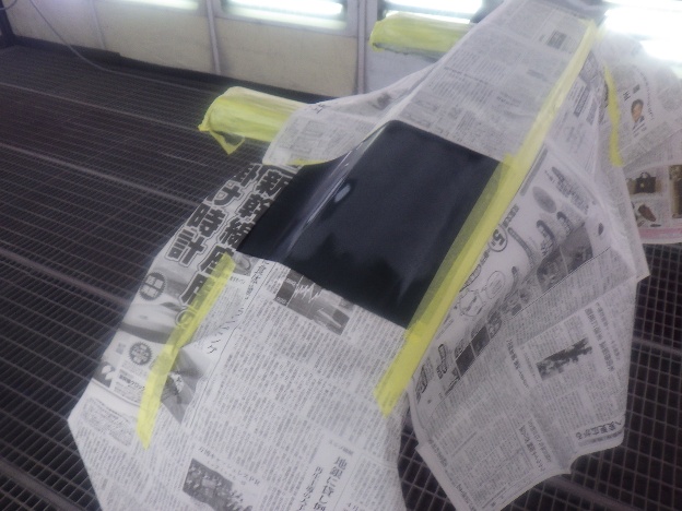 サフェーサー乾燥の後、足付け作業、マスキング作業、脱脂作業、