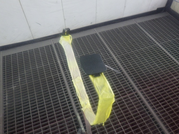 サフェーサー乾燥の後、足付け作業、脱脂作業、エアブローを行い、