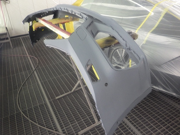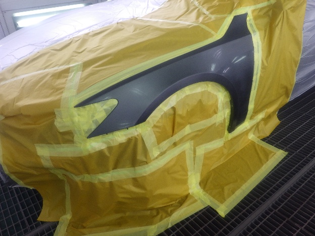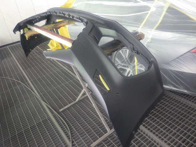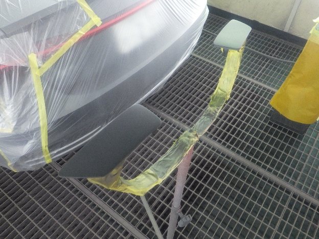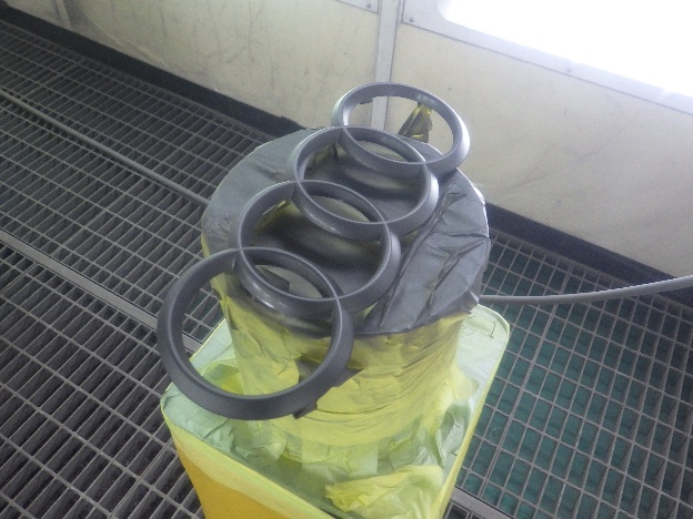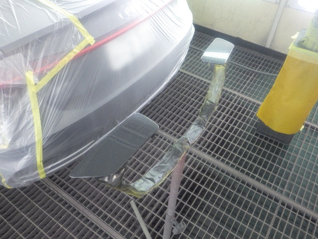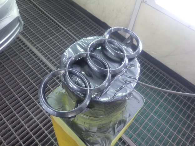 ベースコート(ガンメタ)、トップコート(クリアー)の順に塗装作業を行いました。