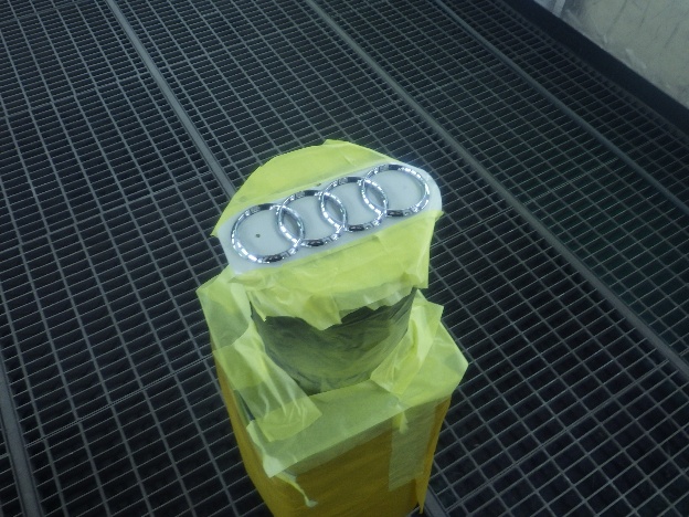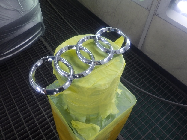 仮合せ作業の後、足付け作業、マスキング作業、脱脂作業、エアブロー、