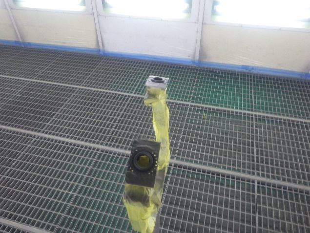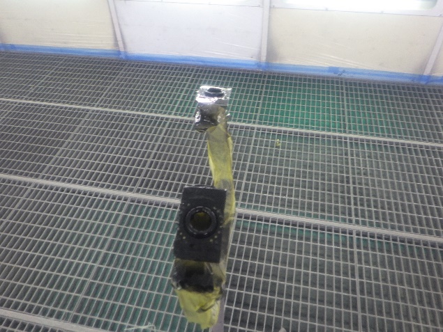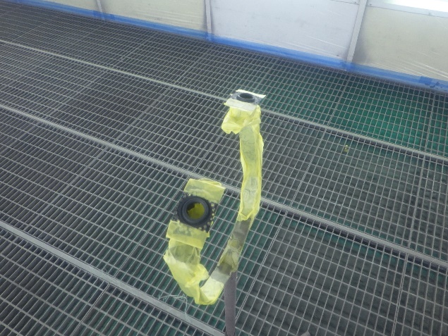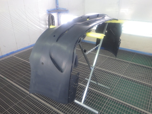 仮合わせ作業の後、塗装準備(足付け、マスキング、脱脂、エアブロー)を行い、