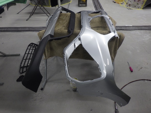 サフェーサー乾燥の後、足付け作業、マスキング作業、脱脂作業、エアブローを行い、