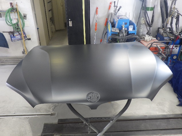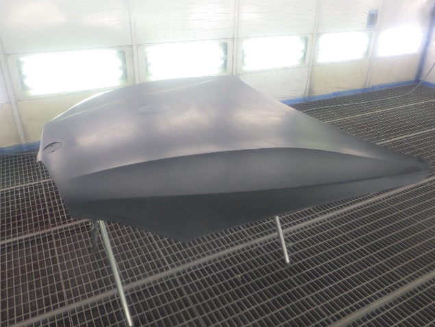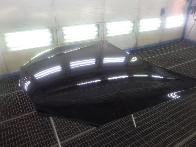 サフェーサー乾燥の後、ベースコート(黒)、トップコート(クリヤー)の塗装作業を行いました。