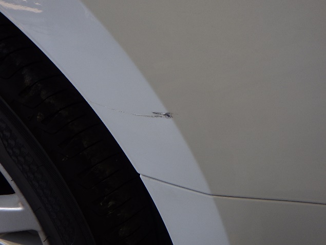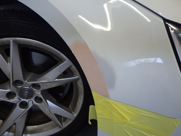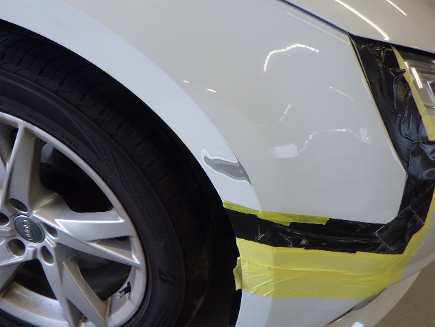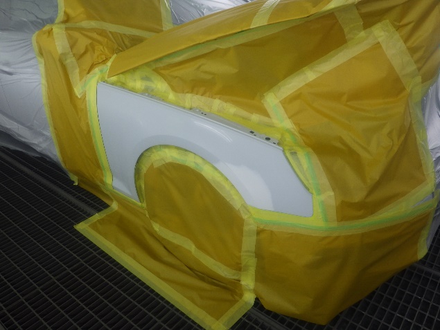 入庫後、損傷箇所周辺のマスキング養生の後、傷修正を行いました。