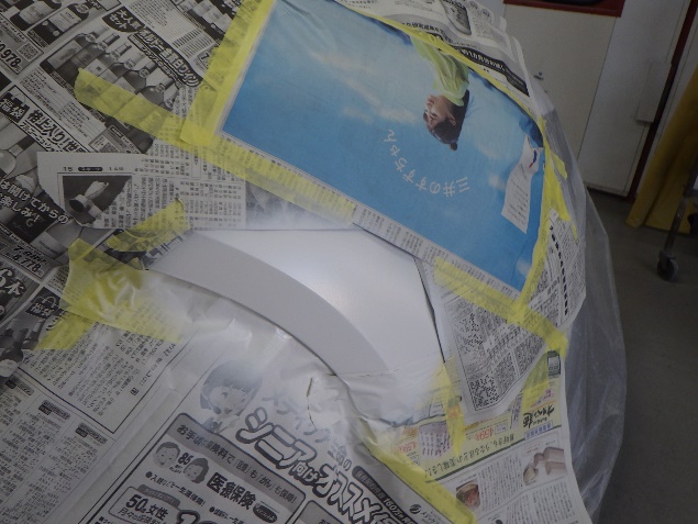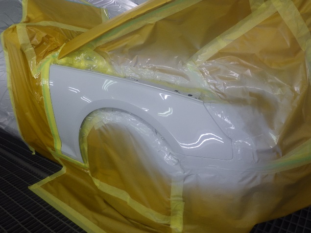 ベースコート(白)、トップコート(クリヤー)の塗装作業を行いました。