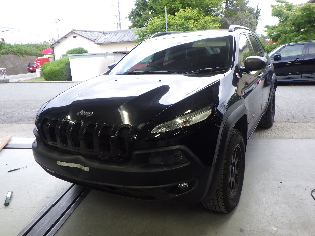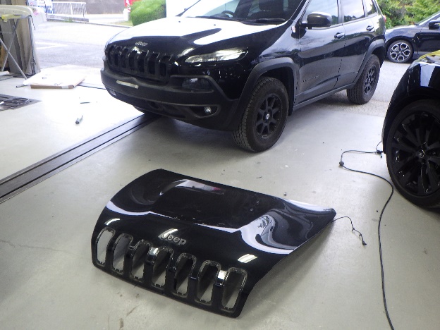 【板金塗装】兵庫県加古川市、A様、2014y、クライスラー、JEEP、チェロキー、フロントバンパーボンネット損傷へこみ修理レポートです!ありがとうございました
