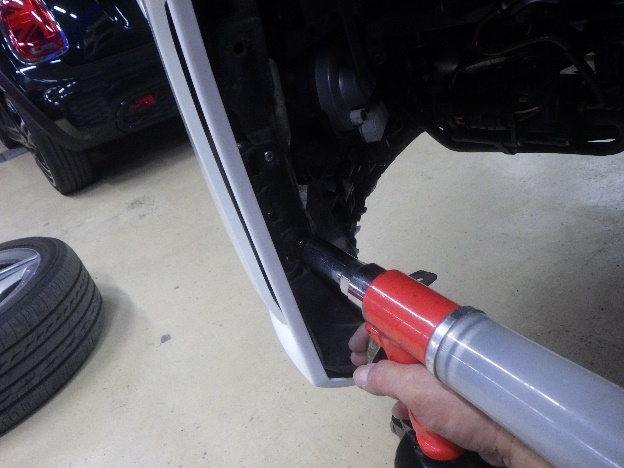 分解作業の後、キズ修正作業を行い塗膜の密着性向上の為、