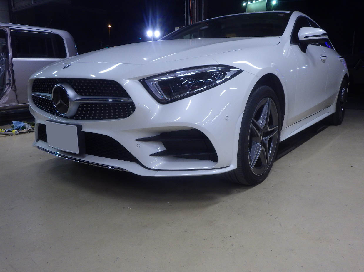【板金塗装】兵庫県加西市、O様、2018y、メルセデスベンツ、CLS、220D、フロントバンパー損傷へこみ修理レポートです!ありがとうございました。