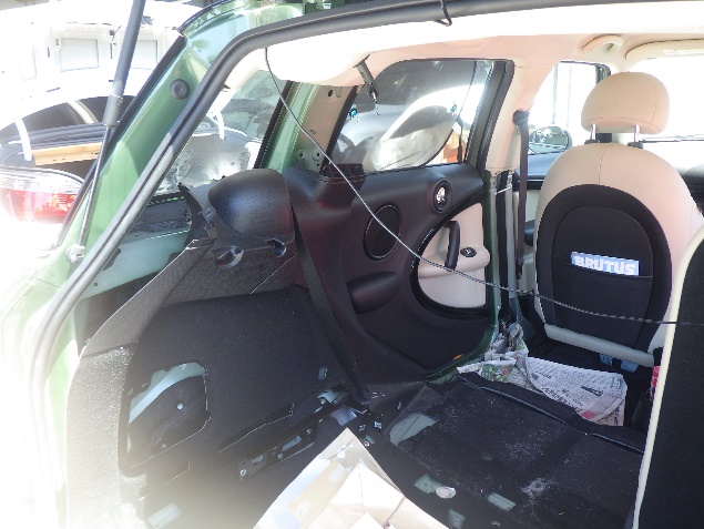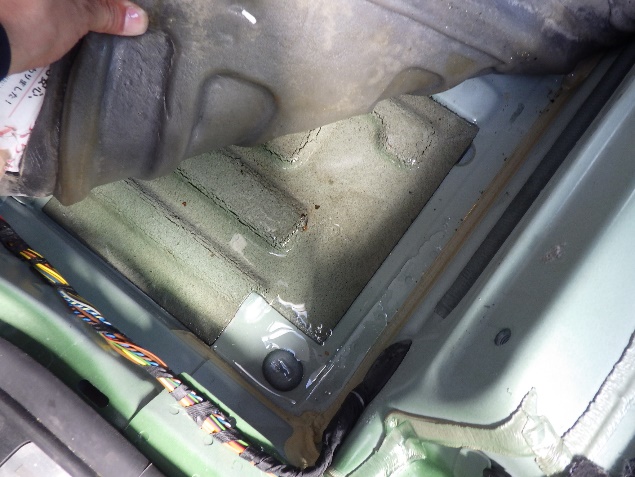 入庫確認の後、シート、トリム類の分解作業を行い、室内への漏水を確認しました。
