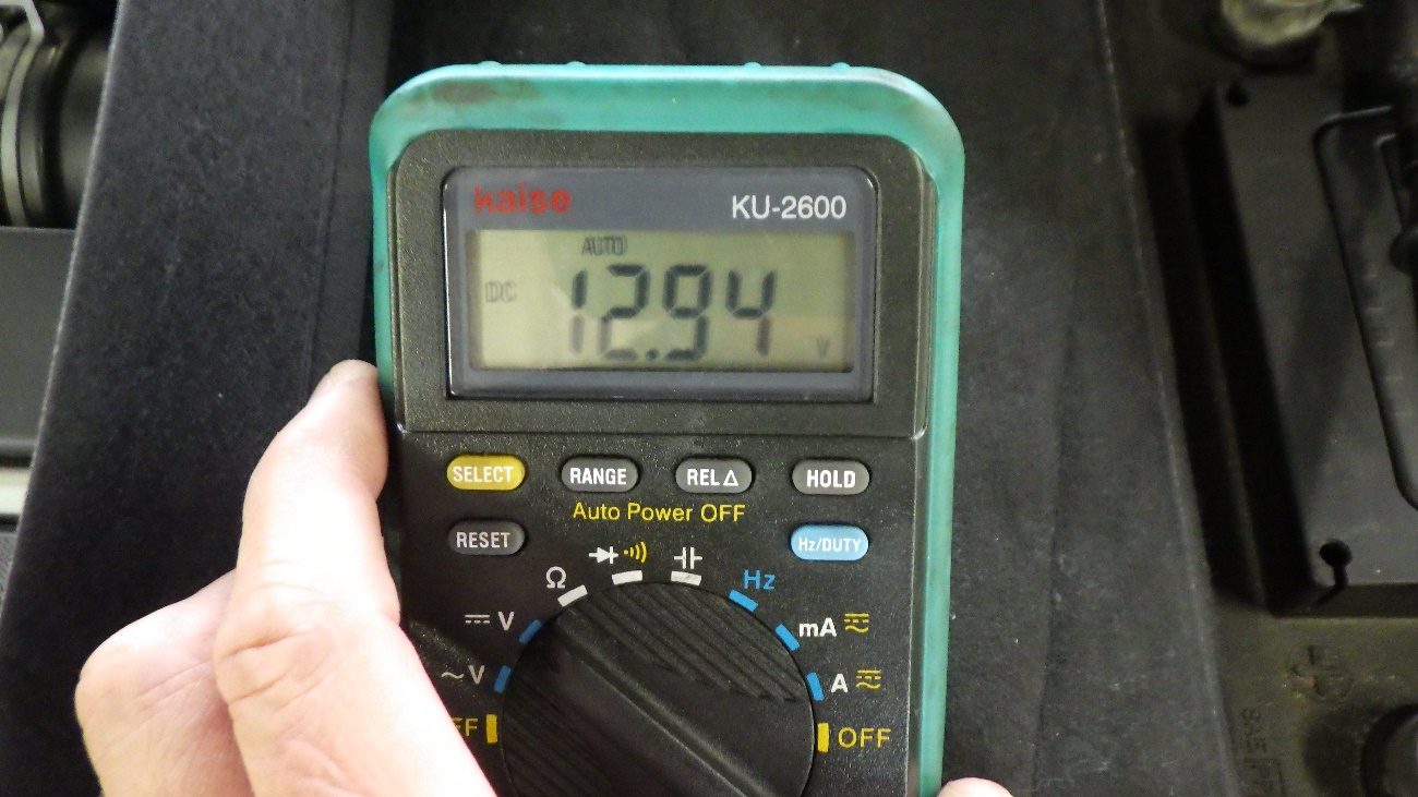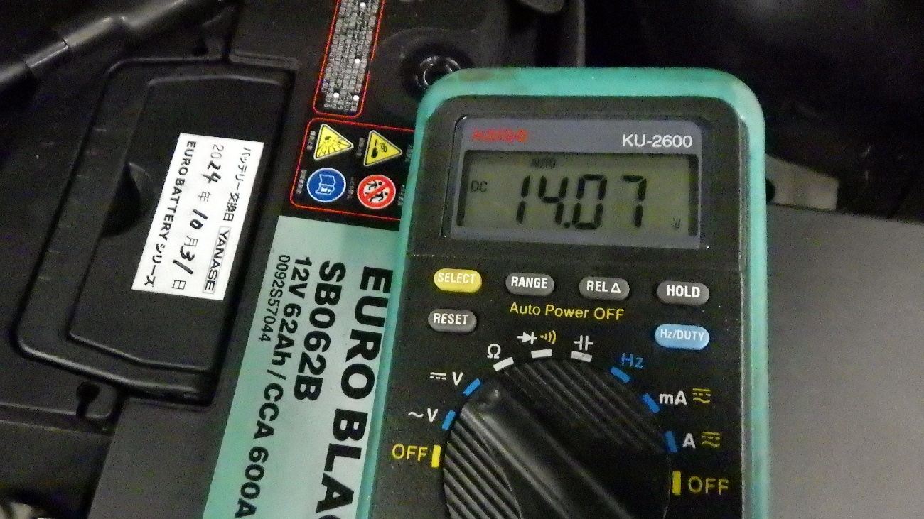 無負荷状態のアイドリングで14.07Vと充電システムは回復致しました。