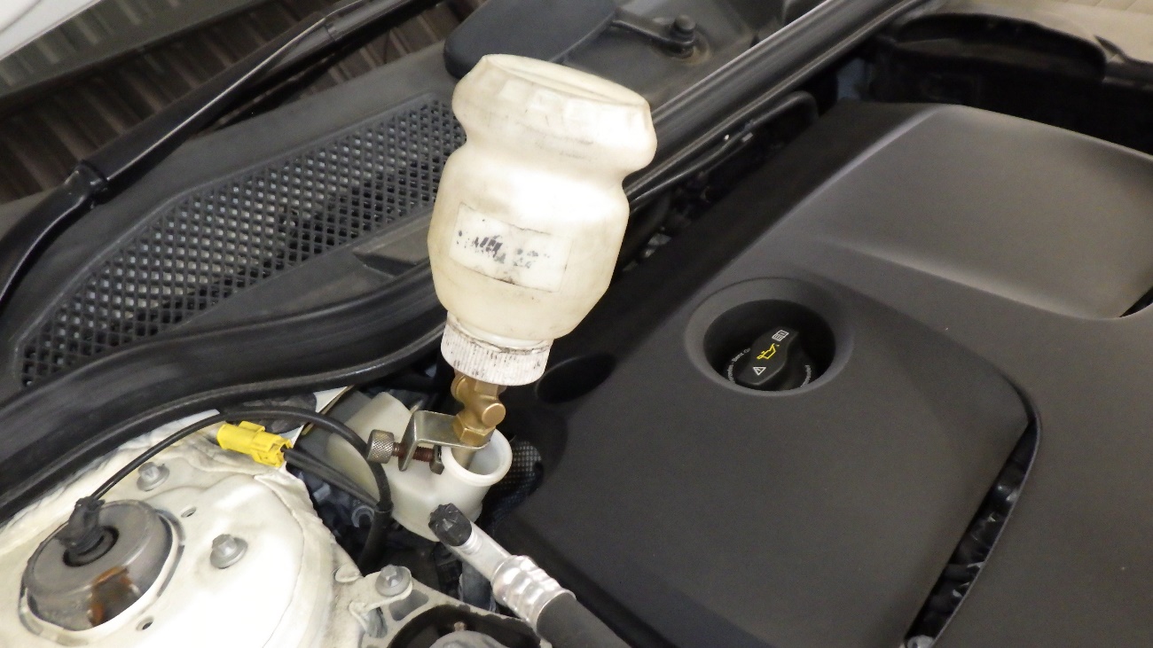 クーラントを補充している様子になります。補充後LLCサブタンク下部からLLCが漏れておりました。