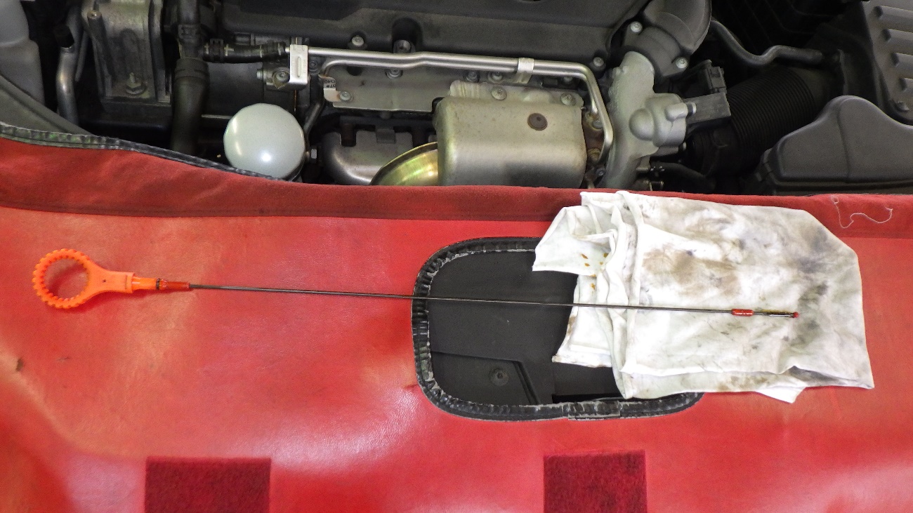 エンジンオイル量の点検を行っております。