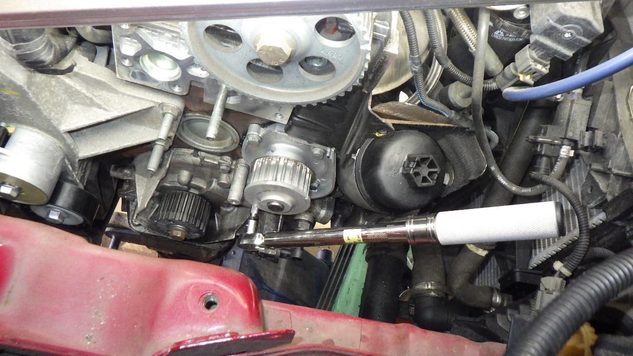 ウォーターポンプ交換後、規定トルクにて締め付けております。
