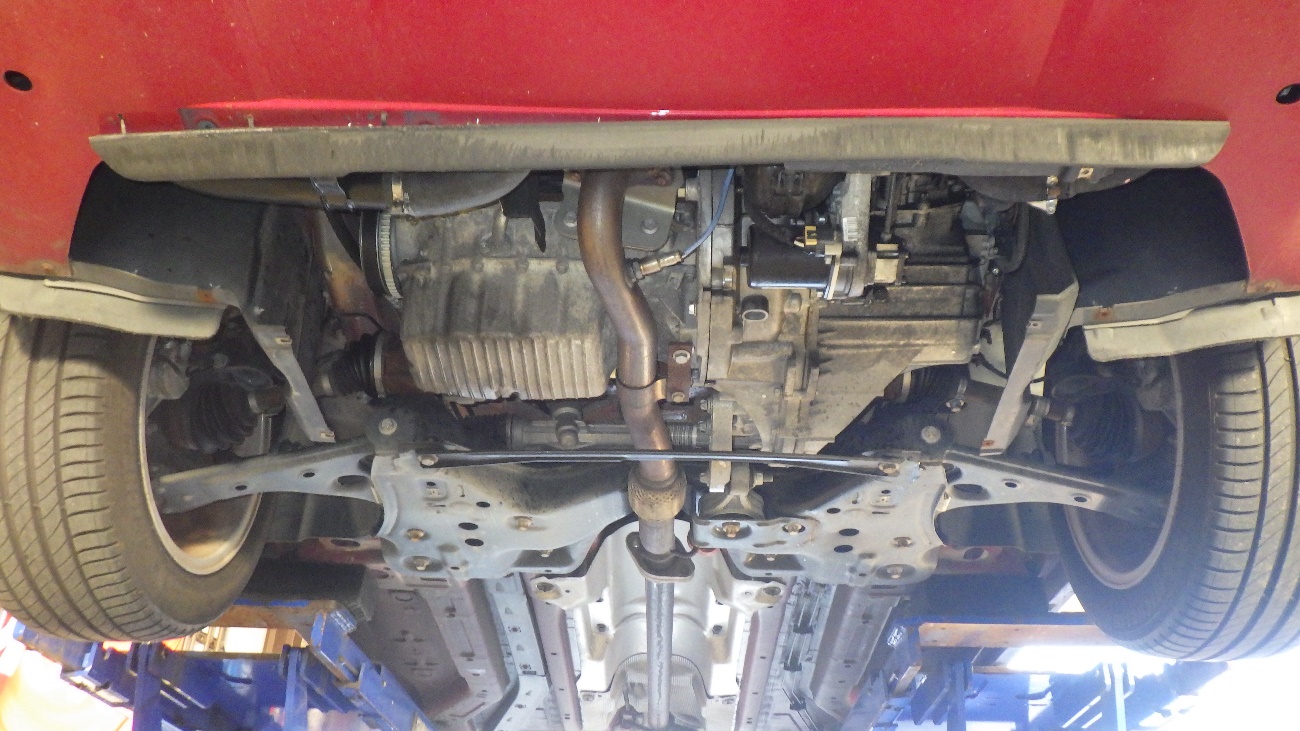 ロードテスト後、再度リフトアップを行い下廻りのチェックを行っております。