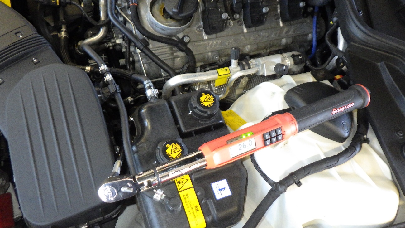エンジンオイルフィルターを規定トルクにて締め付けております。