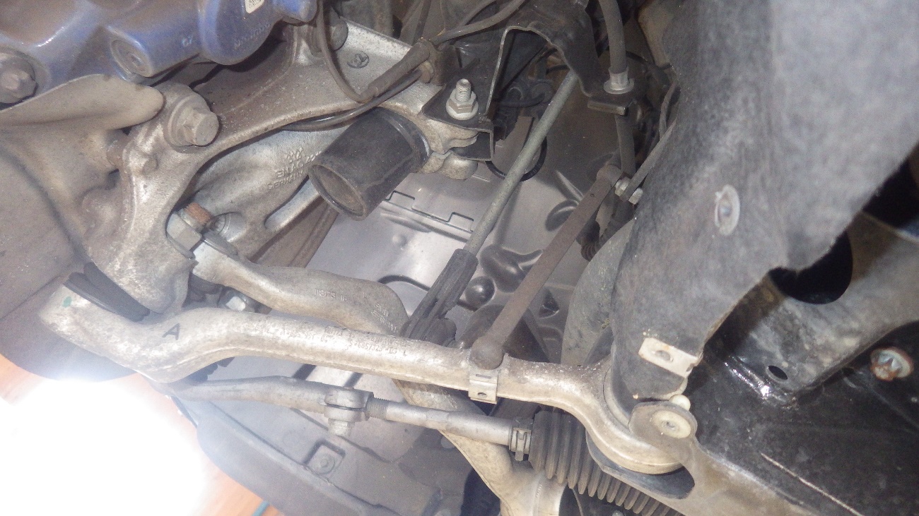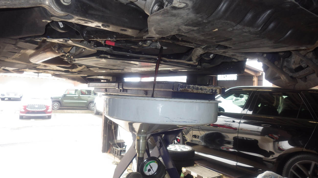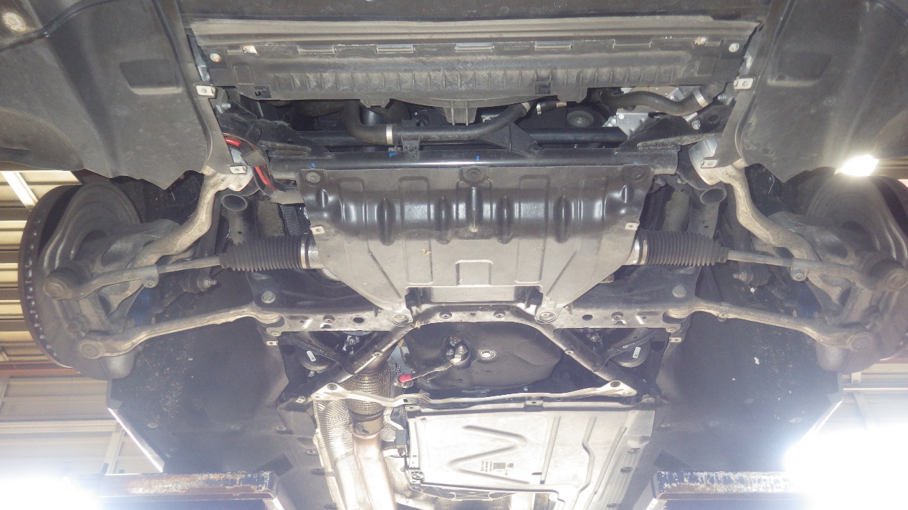アンダーカバーを外した状態のフロント部の下廻りの点検様子になります。