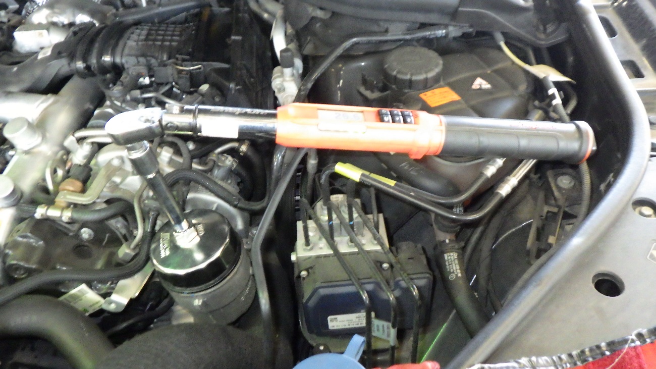 エンジンオイルフィルターの交換後、規定トルクにて締め付けております。