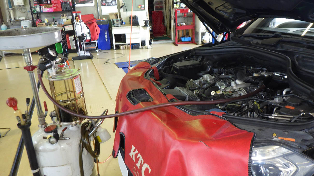 エンジンオイルパン付近が多くオイルが垂れております。前回ご説明した内容の箇所から