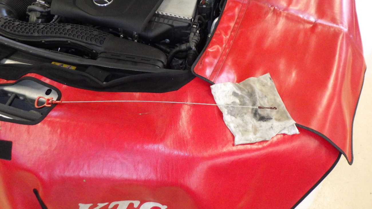 エンジンオイル交換後、レベルゲージにてオイル量を調整しております。