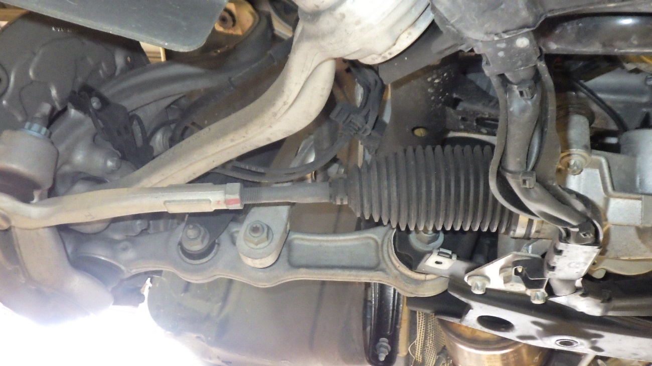 ステアリングラックブーツの破れ、各ブッシュ類の亀裂等の点検様子になります。