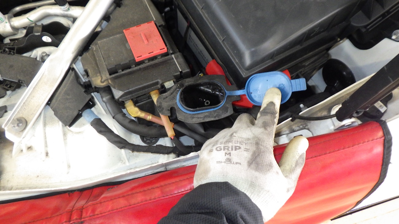ウォッシャー液補充の様子になります。