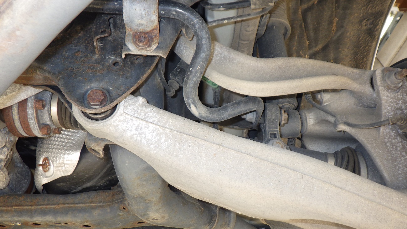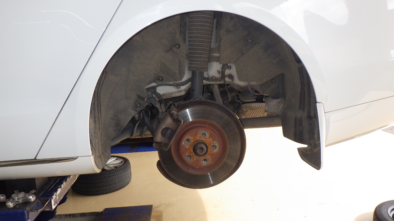 ドライブシャフトブーツや各ブッシュ類の亀裂等の点検様子になります。