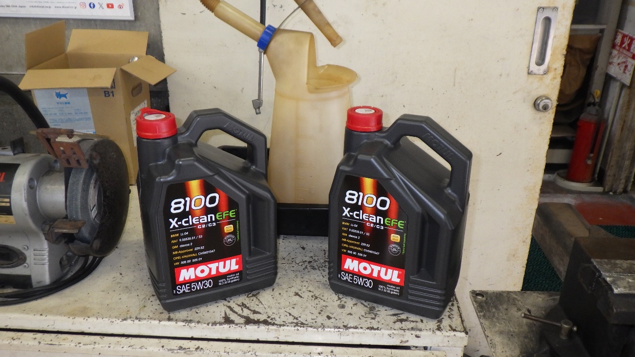 エンジンオイル排出後、新しいエンジンオイルをこちらのオイルを補充しております。