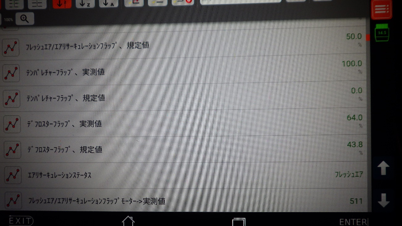 前回の診断で、エアコンミクスチャーフラップモーターが実測値に対して、