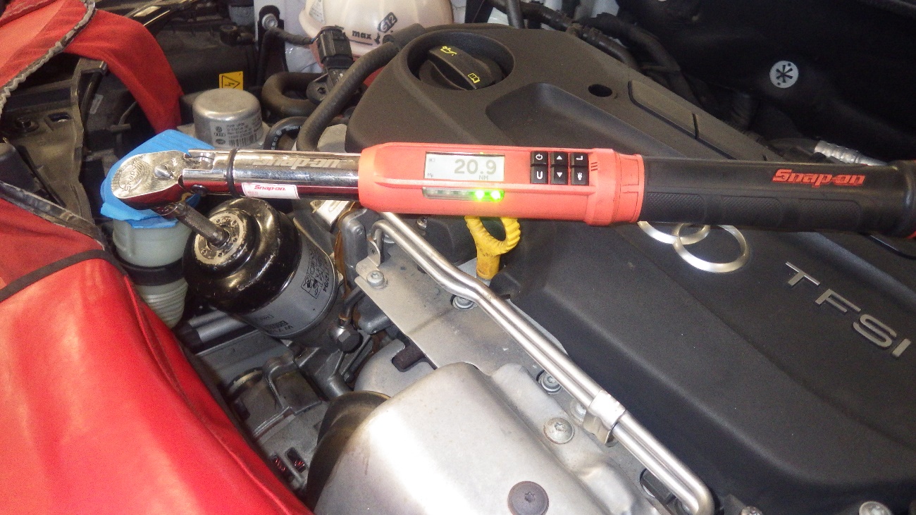 エンジンオイル交換後、ドレーンボルトを規定トルクにて締め付けております。