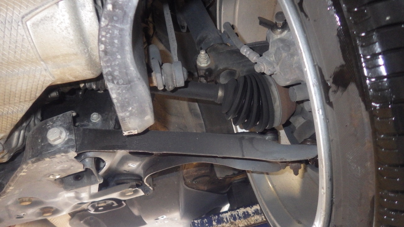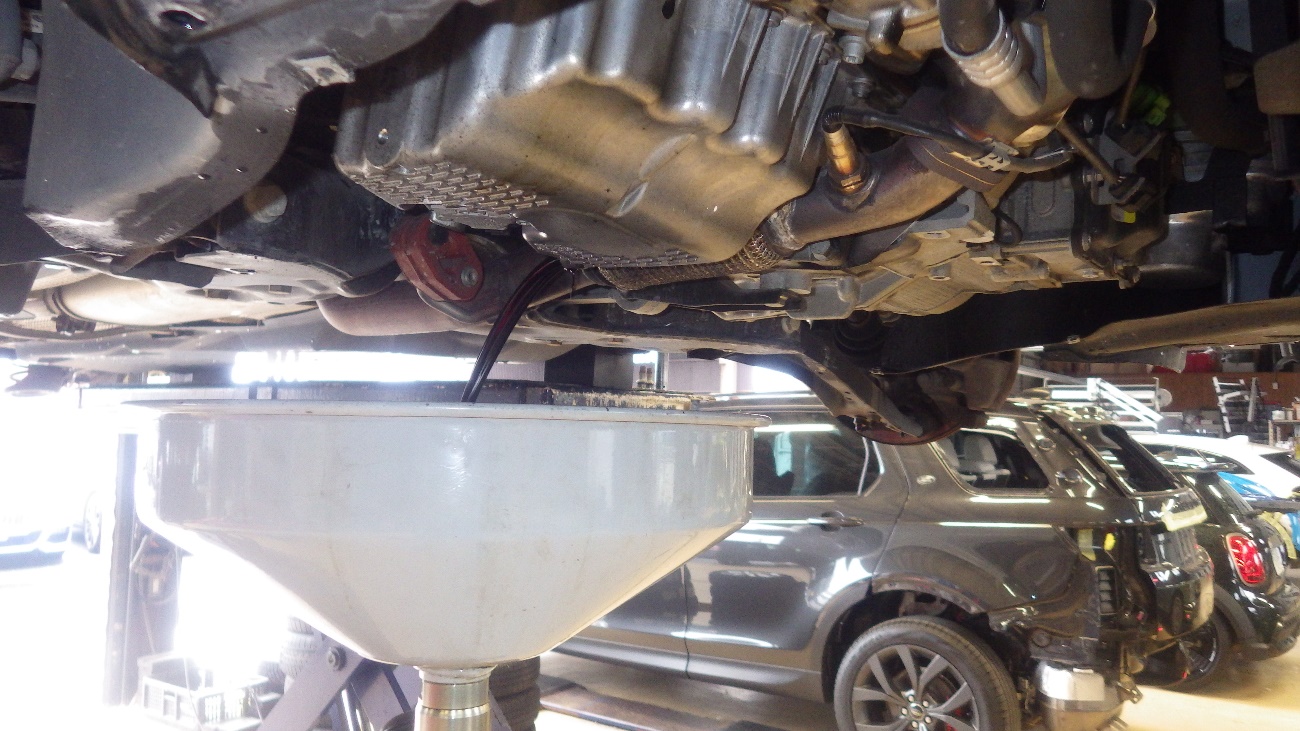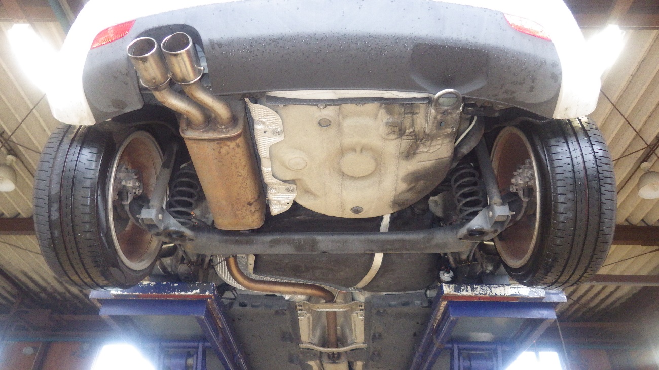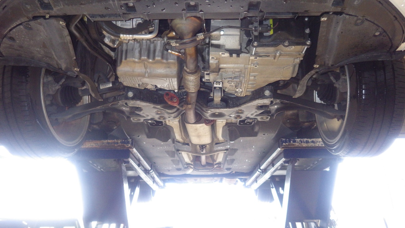 アンダーカバーを外した状態のフロント部の下廻りの点検様子になります。