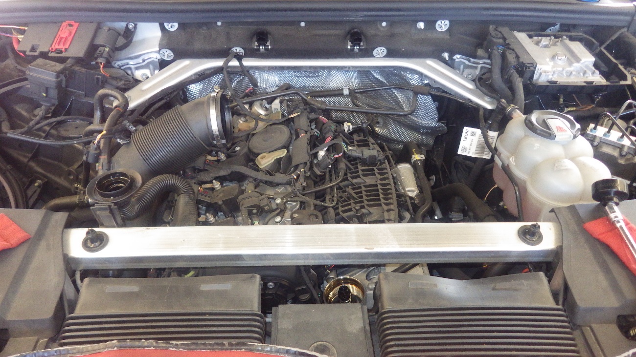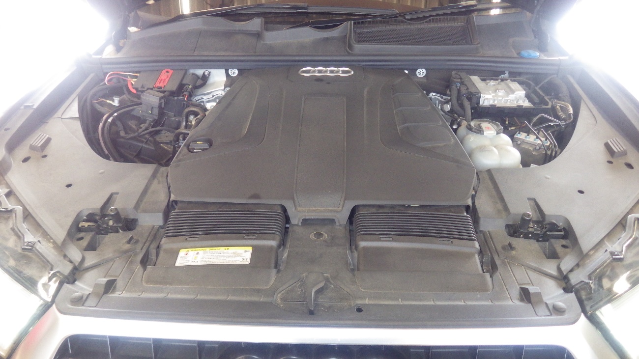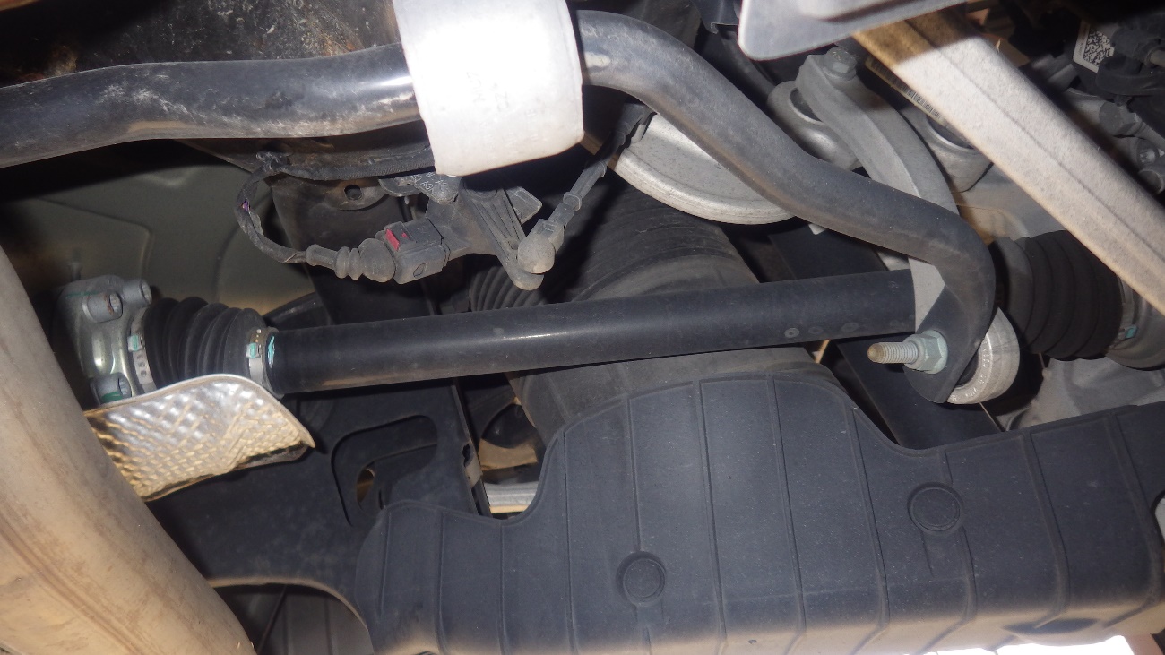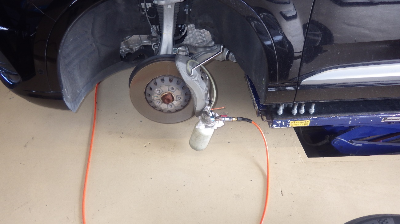 アンダーガードを外した状態のフロント部の下廻りの点検様子になります。
