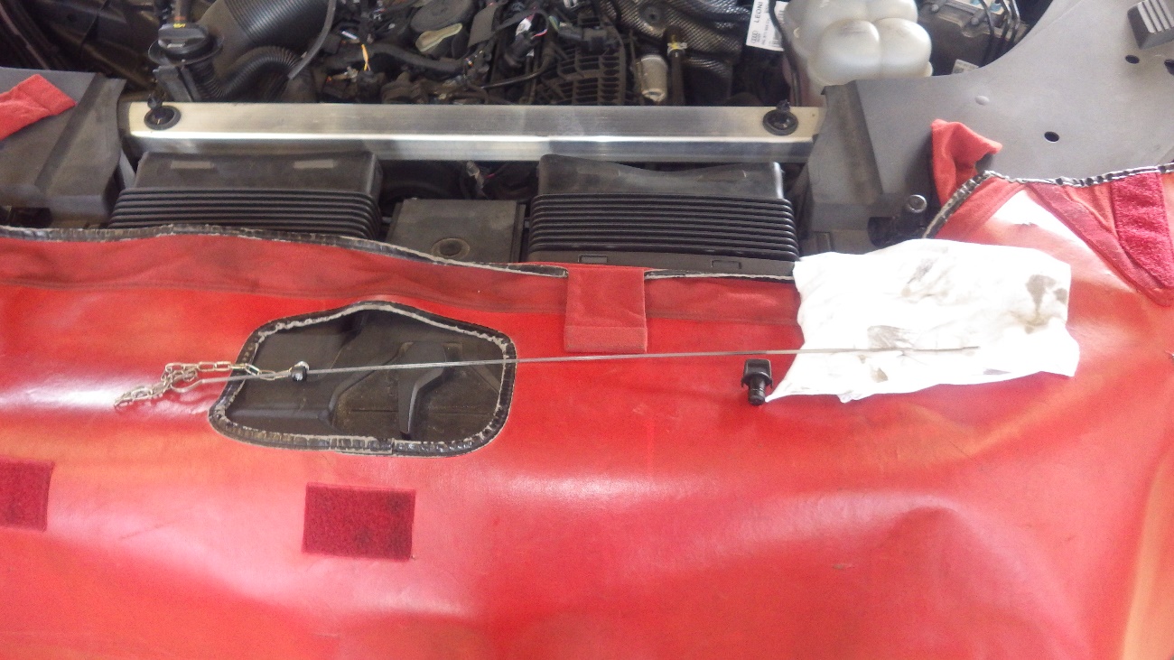 エンジンオイル量を自社の特殊工具のレベルゲージにてオイル量を調整しております。
