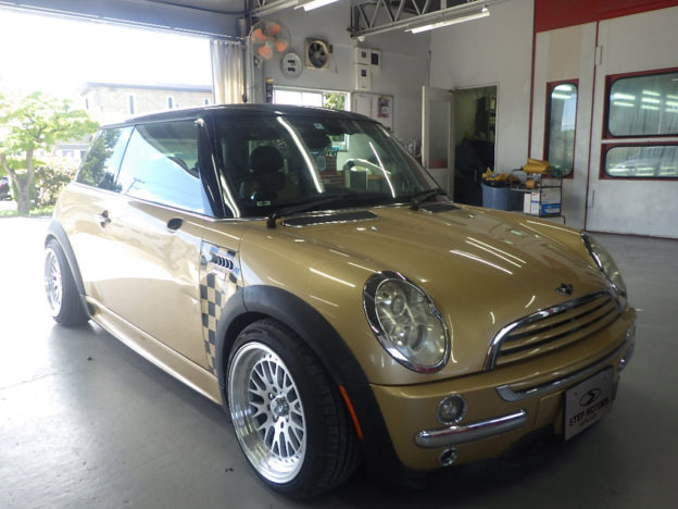 ベースコート(ゴールド)、トップコート(クリヤー)の順に塗装作業を行いました。