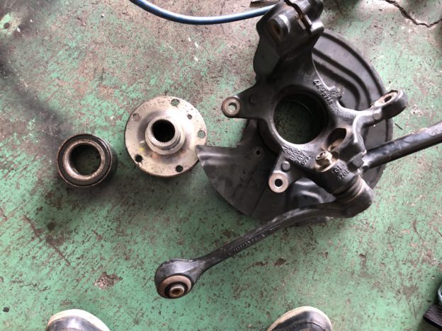 ナックルを取り外し、ハブベアリングの交換となりました。