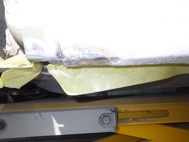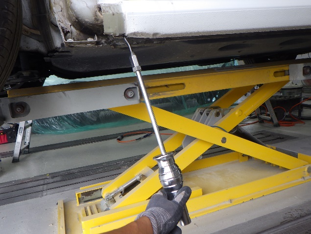 サフェーサー乾燥の後、ドアシルパネルへのアンダーコート塗布作業を行いました。