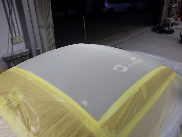 パテ成形の後、サフェーサー塗布作業を行いました。