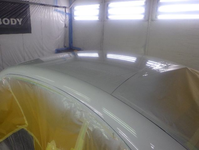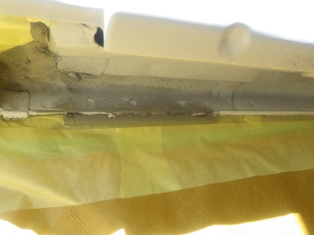 ルーフパネルへのパテ塗布作業の後、ドアシルパネルの鈑金修正作業を行いました。